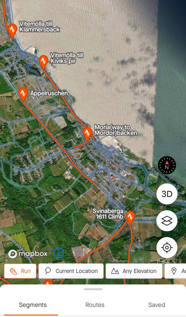Landskapet och miljöerna på österlen inbjuder till otroliga vackra leder för cykling, vandring och löpning. Tyvärr så är det lite svårare att hitta bra rundturer utan de flesta riktiga fina sträckorna kräver antingen en lite längre runda för att komma tillbaka till startpunkten, eller att man kan lämna en cykel eller bil vid målet så att man kan ta sig till bilen igen, eller att man tar bussen tillbaka. En bra sträcka för alla dessa aktiviteter är sydkustleden (googla för karta) som går från Kristianstad till Simrishamn via Brösarp. Otroliga vackra sträckor för vandring och löpning får man i Brösarps backar via Skåneleden och Backaleden (se bild till höger). Det finns ett par olika varianter att ta här och där leden delar sig rekommenderas att ta en extra titt på kartan för att inte komma fel. Den blåa Glimmebodaleden ger en rundslinga på 5km. För längre vandring kan man planera sin rutt på Skåneledens hemsida. Ett annat tips är att gå med i facebook gruppen ”vandringsleder i Sverige” och söka på Österlen för bra tips. Ett tredje tips för löpning och cykling är att ladda ner appen Strava. Där kan man se var andra har sprungit och följa deras rundor. Tredje bilden är från Strava där blåa streck är där någon gått, desto tjockare streck desto fler personer som gått där. Hittar ni en fin rundslinga som ni vill dela med er av så informera oss gärna. På sikt tänkte vi även få upp GPX-filer för de som har löparklockor som stödjer detta.